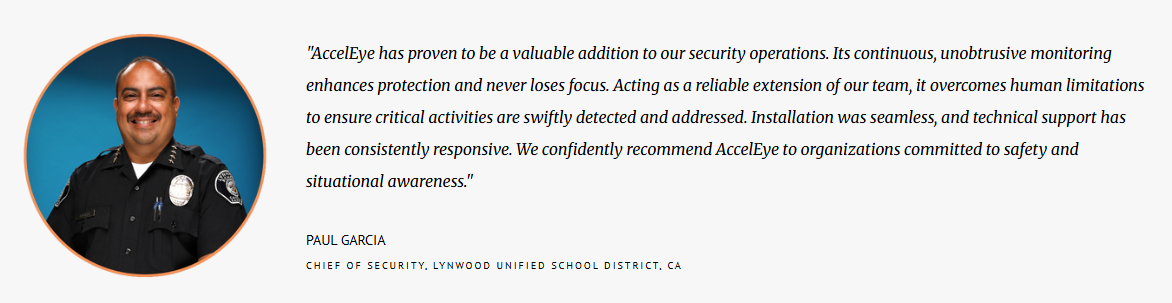 By enabling early intervention and seamless integration with current security workflows, AccelEye improves safety and response times effectively.